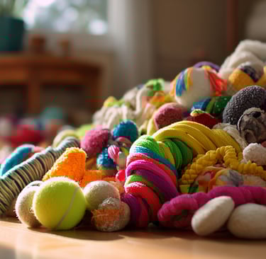 A solid starter set would include at least one good chew toy, one rope or tug toy, one ball, and one puzzle feeder. Everything after that is just for you. And that's okay.